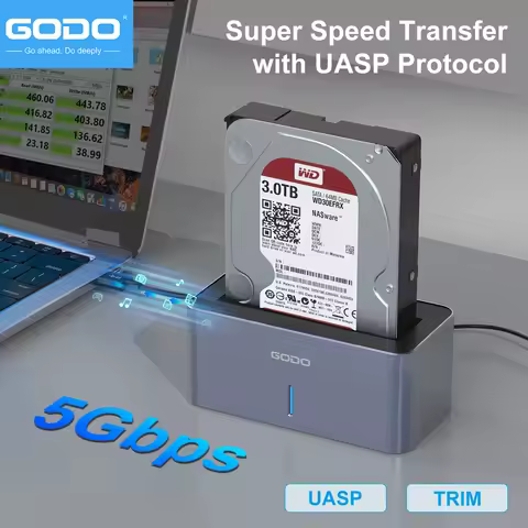GODO SAS/SATA HDD Docking Station USB 3.0 2.5/3.5 Inch External Enclosure for HDD/SSD with 12V/2.5A Power