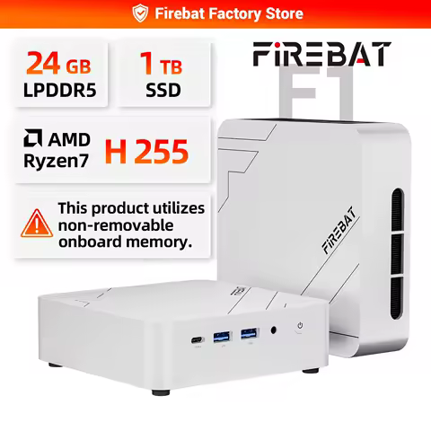 FIREBAT F1 MINI PC AMD Ryzen 7 H255 LPDDR5 24GB RAM 1TB SSD WIFI6 BT5.2 Portable Desktop MINI-PC Windows 11 Desktop Computer