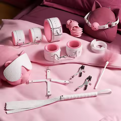 Jouets sexuels pour femmes, 10 pièces/ensemble, menottes de Bondage sexuel, fouet, jouets sexuels pour Couple adulte, ensemble d'outils érotiques pour adultes, Kits BDSM en cuir