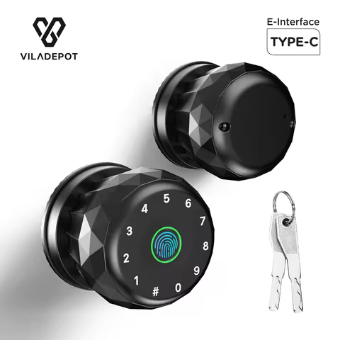 Viladepot 스마트 잠금 지문 인식 도어 잠금 장치 TYPE-C 인터페이스 앱 제어 비밀번호 잠금 해제 전자 터치스크린 키패드 실내