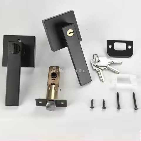 검은 문 손잡이 문 손잡이 잠금 사각형 채널 개인 정보 보호 마스크 인테리어 침실 룸 욕실 잠금 홈 잠금 장치