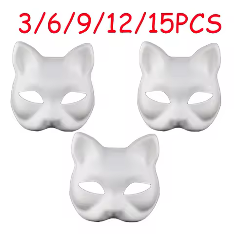 3/6/9/12/15 pièces masques Therian masques de chat blanc blanc bricolage masque d'halloween animaux demi-masques mascarade Cosplay fête 2024