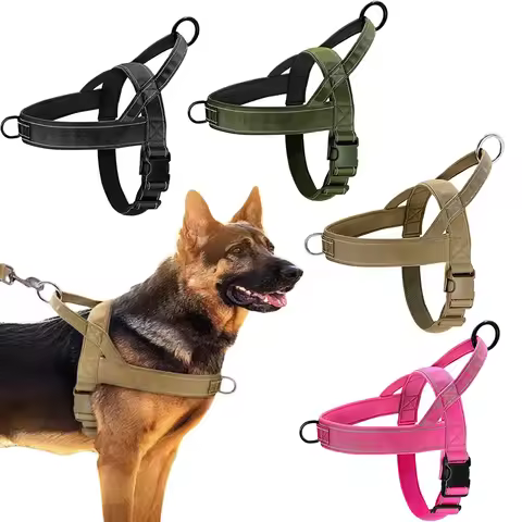Tactical Anti-Pull Dog Harness - 1000D Nylon Adjustable for Large Dogs, Outdoor Training Vest with Handle & Reflective