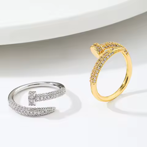 Women Adjustable Nail Ring Korean Fashion Punk Cubic Zirconia Ring Daily Simple Jewelry