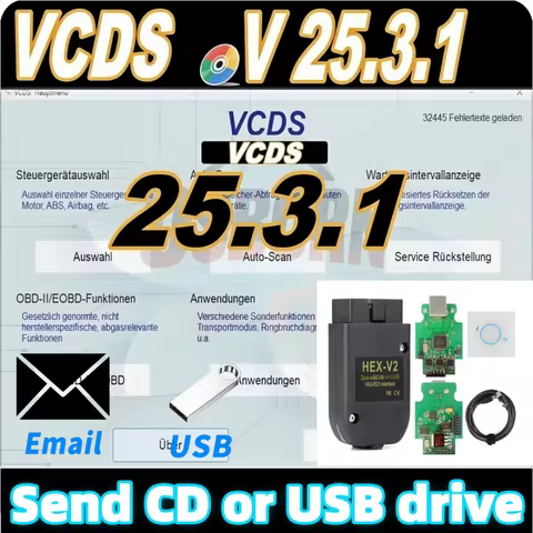 2025 HEX V2 device New version VCDS 25.3 UPDATE SOFTWARE VAG-COM OBD2 Scanner USB FOR V/W AU/DI Sko/da Se/at