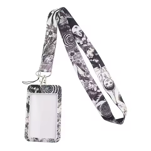 LX518 Anime Charm Girl 카드 홀더 매는 밧줄 넥 스트랩 로프 키 핸드폰 ID 카드 배지 홀더 Keychain Keyring Lariat Gifts