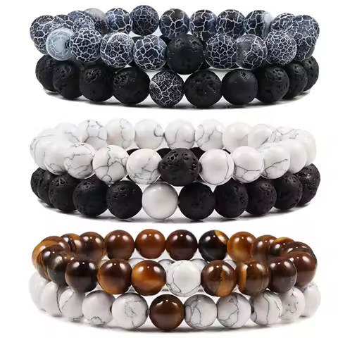 세트 팔찌 커플 거리 블랙 화이트 자연 용암 돌 타이거 아이 페르시 요가 팔찌 남성 여성 탄성 로프 쥬얼리