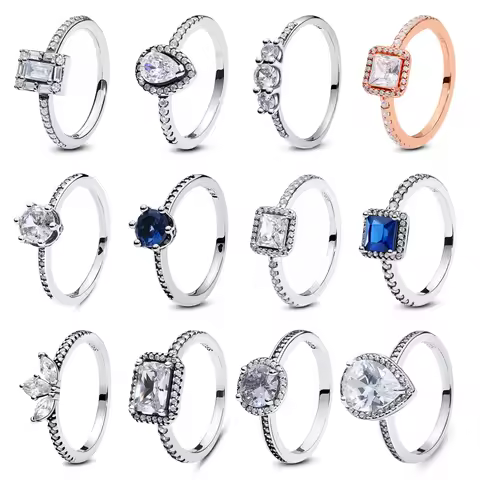 Original 925 Sterling Silver Ring Love Heart Pave CZ Crystal Stackable Rings For Women Wedding Engagement Birthday Gift Jewelry
