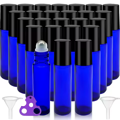 24pcs Glass Roll on Bottle 10ml Empty Essential Oil Roller Bottle with Stainless Steel Ball Opener Funnel Travel Accessories