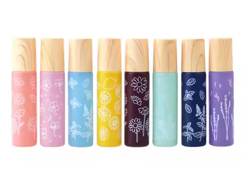 8X 10ML Macaron Flower Glass Essential Oil Roll On Bottles Metal Roller Ball Plastic Cap for Perfume Aromatherapy Refillable