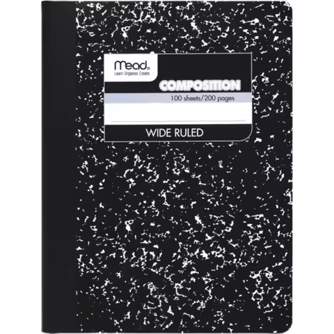 Cuaderno de composición, papel de rayas anchas, 7-1/2" x 9-3/4", 100 hojas, mármol negro