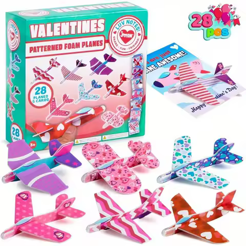 JOYFY 28 tarjetas de felicitación de aviones de espuma para el Día de San Valentín con punzón de San Valentín para premios de intercambio en el aula escolar Favor de fiesta