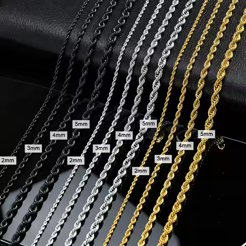Rope Long Chain Necklace for Men Women,Waterproof Stainless Steel Twisted Rope Chain Collar,Punk Minimalist Jewelry Gift