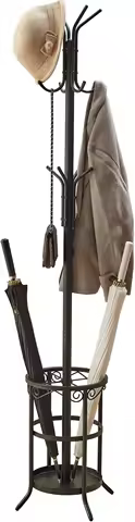 Freestanding Coat Rack with Umbrella Holder, 12 Hooks for Entryway and Living Room in Black
