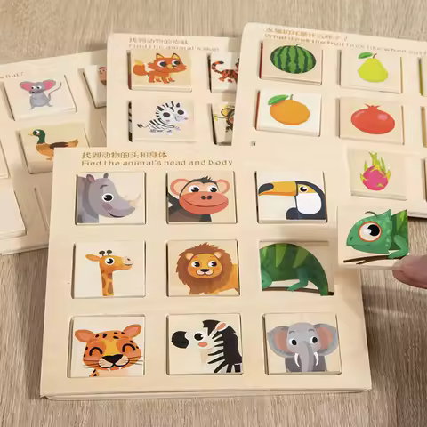 Wooden Logical Thinking Matching Puzzle Cognitive Board Montessori Teaching Aid Fruit Animal Pairing Board Educational toys