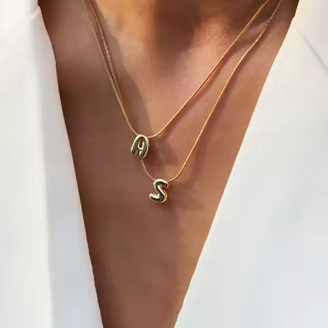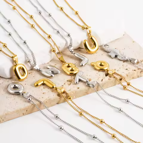 Delicado chunky alfabeto balão bolha letra inicial pingente colar para mulheres homens aço inoxidável banhado a ouro colares