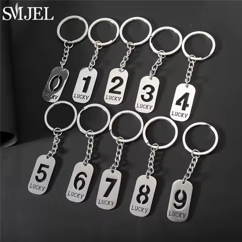 Personalize Numerals Keychain Fashion 0-9 Lucky Number Stainless Steel Keyrings Purse Handbags Pendant Keyholder Accessories