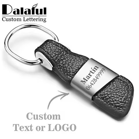 Genuine Leather Keychains Custom Lettering Keyrings Metal Engrave Name Customized Logo Personalized Gift Key Chain Car K375